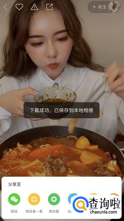 当然,我们可以直接保存下来视频,在转发界面中点击【下载到本地】即可把视频保存到手机。