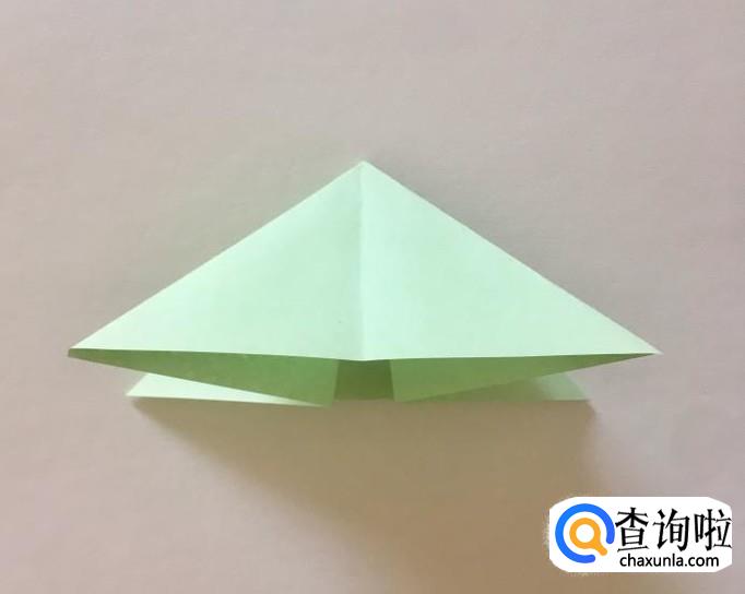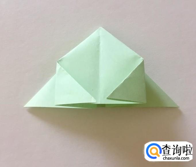 如下图,将三角形两侧的角向中间折,另一面的角也向中间折,折出一个五边形。