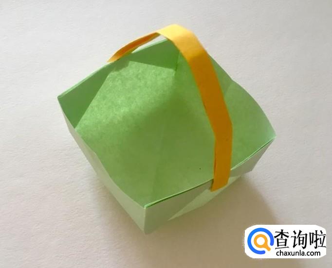 小心地从中间打开五边形折纸,整理好形状,一个纸篮子就折好了。
