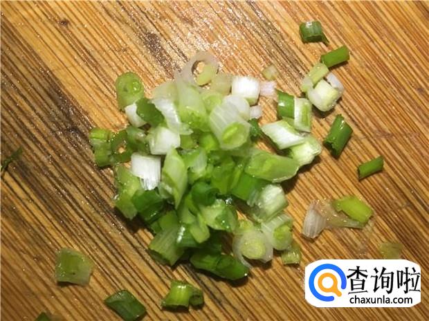 小葱清洗干净,切成葱末;蒜头切碎,备用。