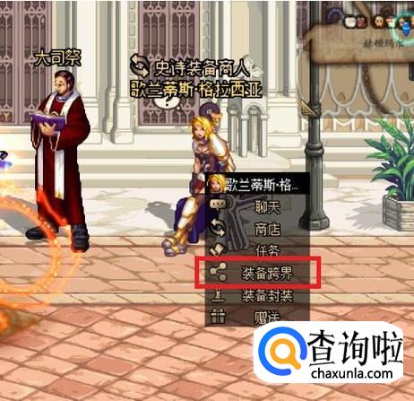 与歌兰蒂斯对话,在操作列表中点击“装备跨界”选项。