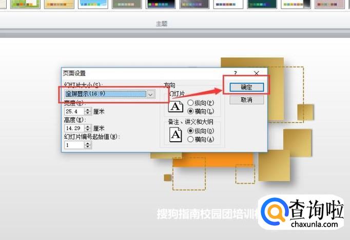 点击下拉列表之后,找到【全屏显示(16:9)】,然后选择该选项,点击“确定”即可,如图所示。