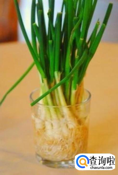 我们还可以取一个空玻璃瓶,倒入半瓶水,把香葱的根部栽入水里,保鲜几天不是问题哦!