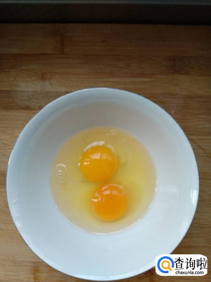 取鸡蛋两枚,并洗净,打入碗中,并将鸡蛋打散。然后倒入油锅中,翻炒一下(注意:不用炒熟),变色即可捞出。