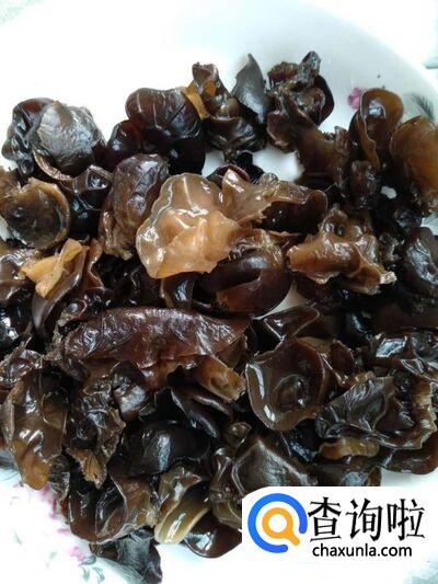 准备木耳适量,提前将木耳泡制温水中,至泡发,取出,并控干。
