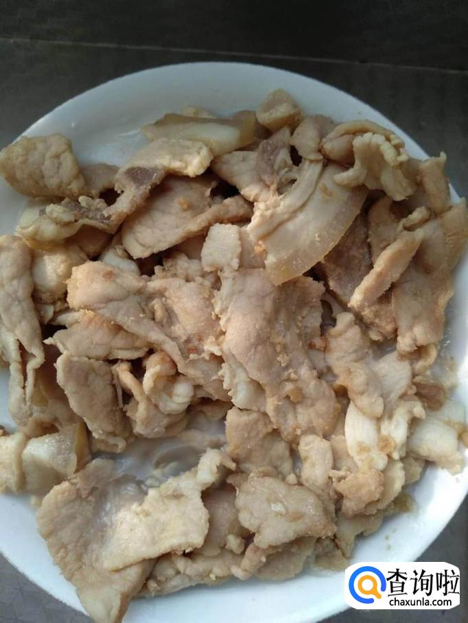 将猪肉切片,并将猪肉中加入一定量的料酒、淀粉搅拌均匀,腌制10分钟后,下入到锅中翻炒一下(注意:不用炒熟),变色即可捞出。