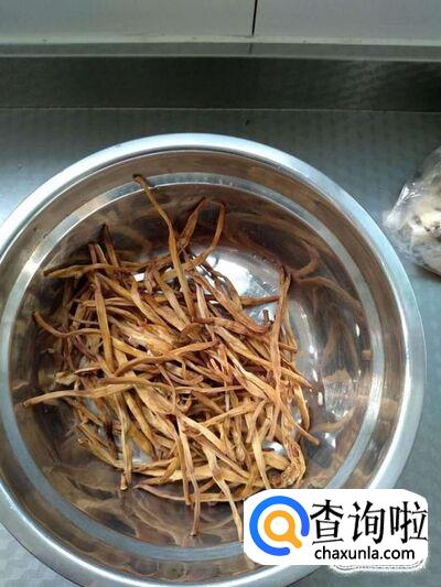 取干的黄花菜适量,泡入温水中,洗净,泡发,备用。