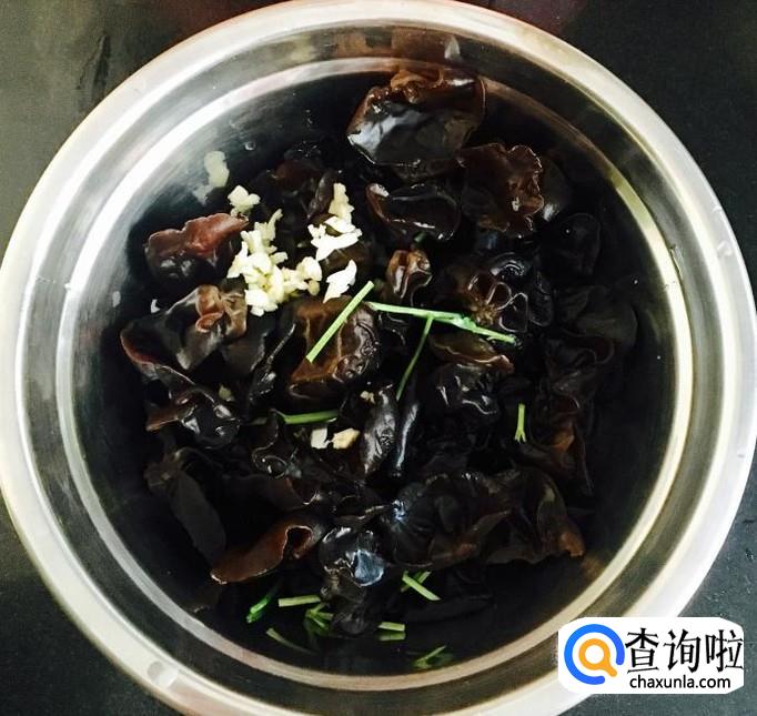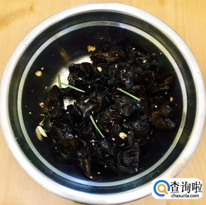木耳,大蒜,香菜,香醋,白糖,味极鲜酱油,香油,盐等等