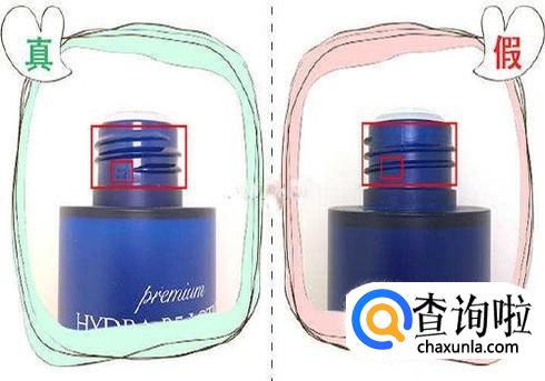 第二步看螺纹。正品的水乳在螺纹下侧有数字,假货是没有的。螺纹的样式也略有不同。