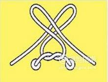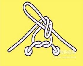 在交叉兔子耳朵之间下方留一个开口,用另一只手将后面的兔子耳朵顶端充前面纳入开口里面。