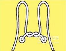 然后,双手配合用绳子,会各形成一个兔耳朵,将它们交叉。