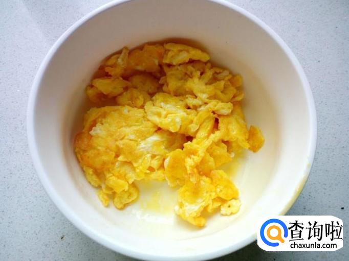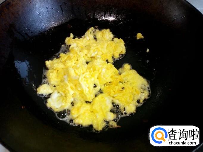 用锅先把鸡蛋炒出来,炒至七分熟,盛出备用。