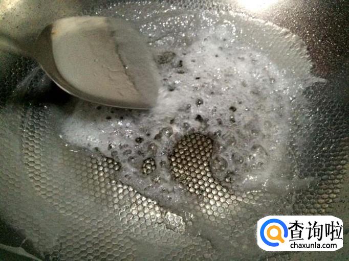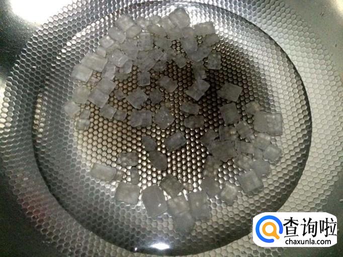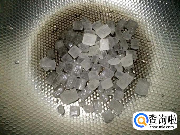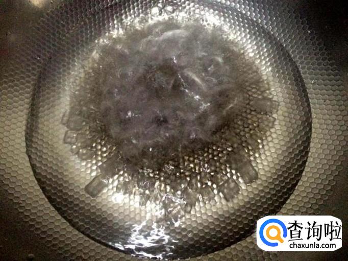 另起锅,将冰糖和水放到锅内一起熬煮。