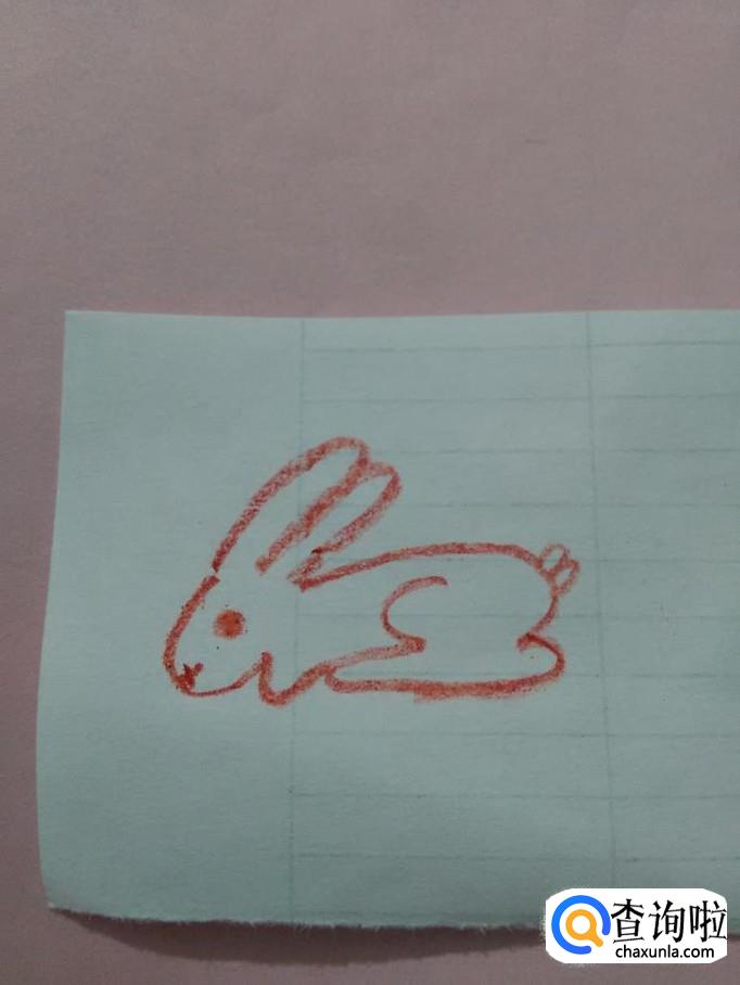 最后,用红笔在头上画一个红点,表示眼睛,在眼睛下面画一个X,表示嘴,小兔子就画完了。