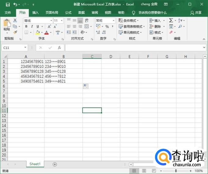 我们打开一张表格,随机输入一些11位数字作为例子。