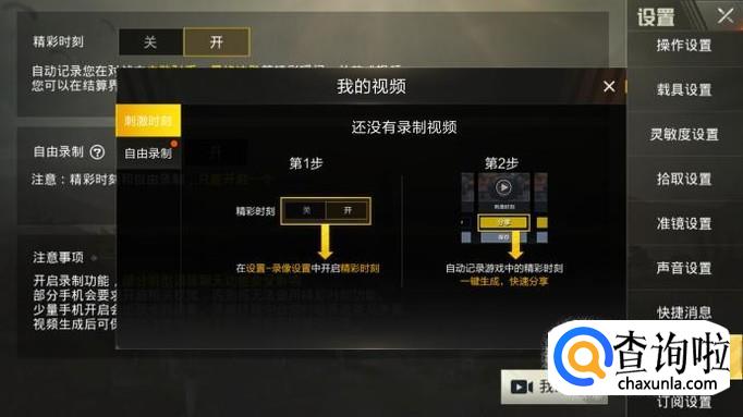 刺激战场是一款很优秀的手机吃鸡游戏,我们除了可以体验吃鸡时的快感,还能从精彩击杀视频里面得到愉悦,怎么开启精彩时刻录制呢?