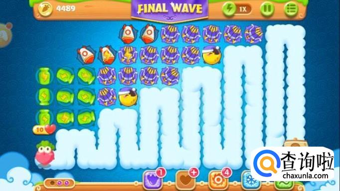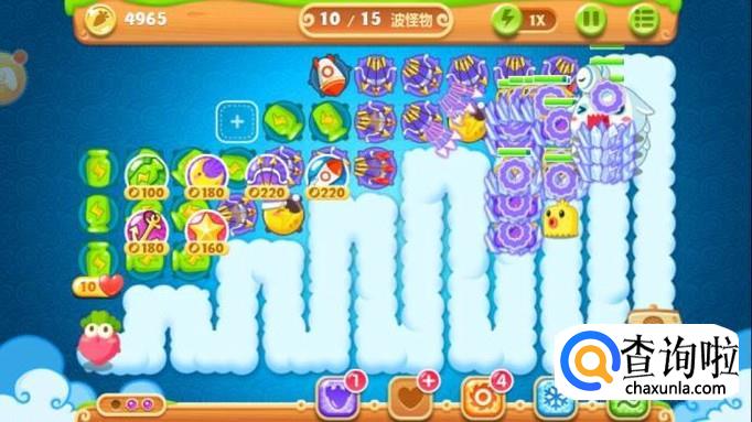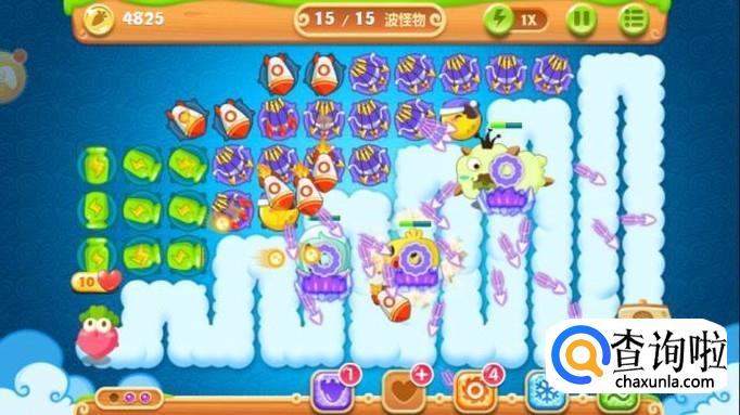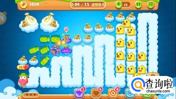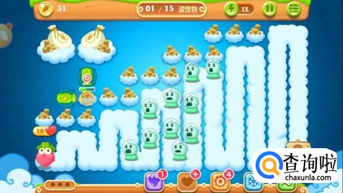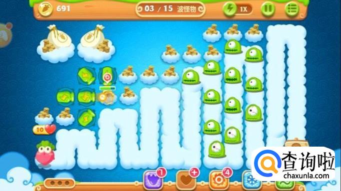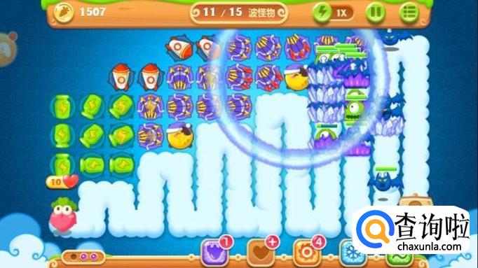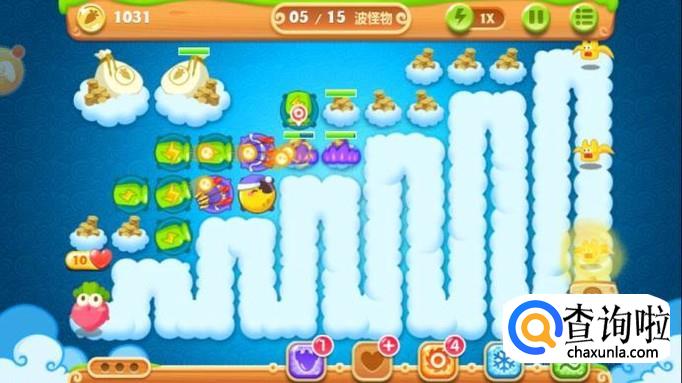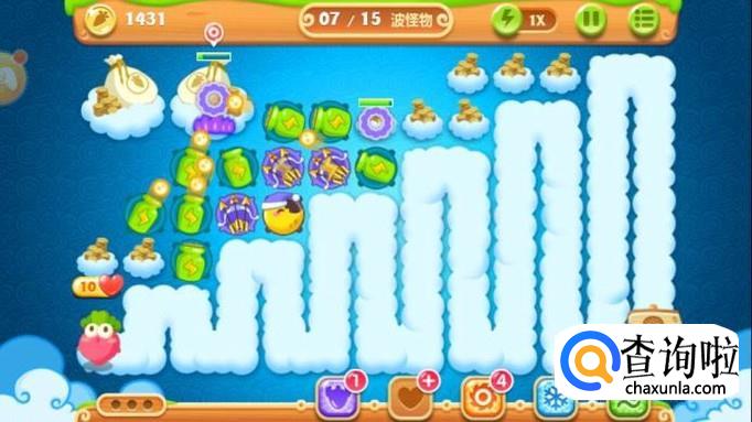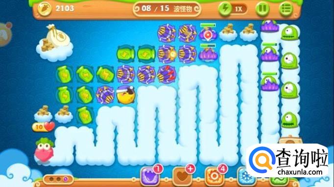用这个方法,在第三关时就已经消除了两个瓶子炮塔了,小编的金钱也比较充足了,这时再继续慢慢的逐个清除掉钱袋。