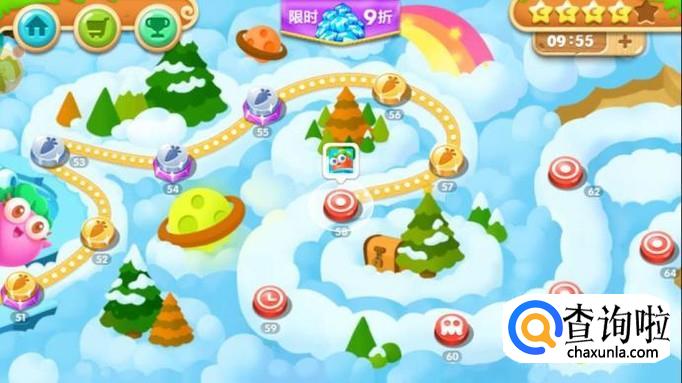 点击第58关,查看关卡信息。这一关的路线十分有趣,成一个三角形,路线十分的长,但是右下角的怪物肯定难以打到。总共有15波怪物。提供的炮塔有瓶子炮,月亮塔,弓箭,火箭,船锚和炸弹星炮塔,提供的炮塔比较全,既有减速的,也有攻击力强的。