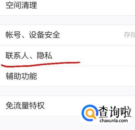 进入设置页面之后,找到并且点击选择联系人、隐私