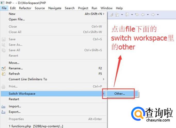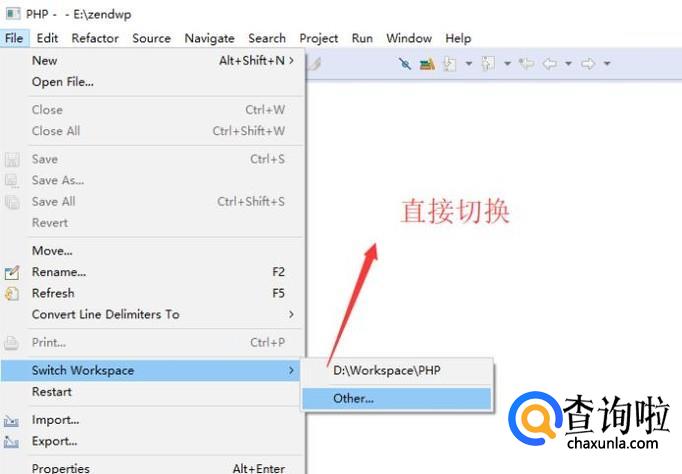 接下来我们点击顶部的File菜单,选择下拉菜单中的Switch WorkSpace选项,然后点击Other,如下图所示