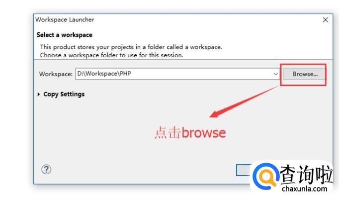 在弹出的WorkSpace Launcher界面,点击下拉框右边的Browse按钮,如下图所示