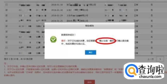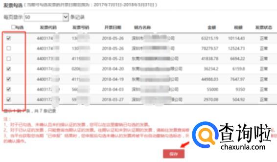 会出现可以勾选发票的界面,选择你想要勾选的发票,然后点击“保存”选项。