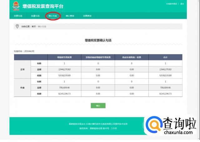 确定完以后,我们回到主界面,点击上面的“确认勾选”选项,检查信息无错误后,点击“确认”。