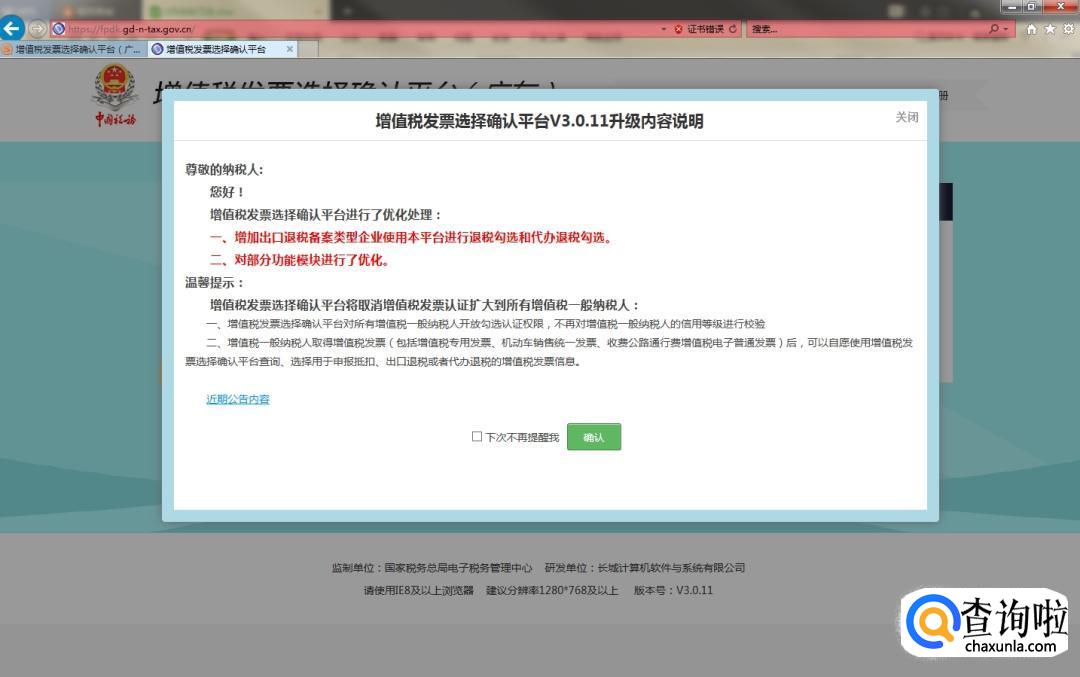 进入链接后,会弹出以下界面,我们选择“确认”选项。