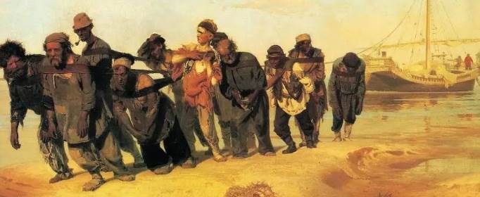 世界名画《伏尔加河上的纤夫》是俄国批判现实主义画家伊里亚·叶菲莫维奇·列宾于1870年至1873年间创作的一幅油画,现收藏于圣彼得堡俄罗斯博物馆。该画描绘了在伏尔加河畔一组在沉闷压抑的气氛中奋力拉纤的纤夫群像,反映了俄国纤夫苦难的生活,寄托了画家对下层人民群众悲惨生活的同情,也艺术地体现了作者民主主义革命的思想。