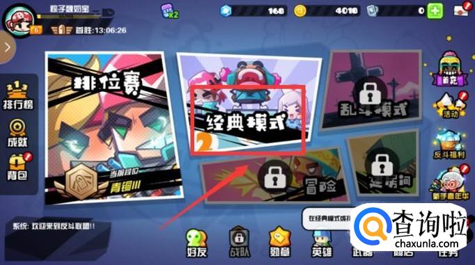 首先登录到反斗联盟的页面,点击页面上的“经典模式”,“经典模式”比较好玩一些,新手等级不够最先能够玩的就是“经典模式”。