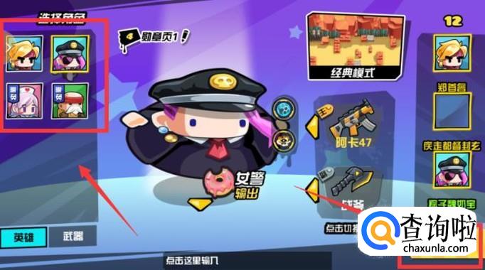 匹配成功到队友后,左上角会有很多的角色,选择一个你想要在游戏内使用的角色,点击右下角的“确定”,右侧也会显示队友选择的角色,角色有绿色的对勾说明是准备好了。