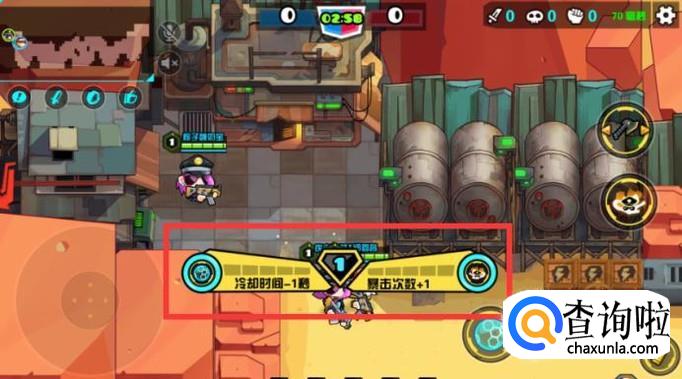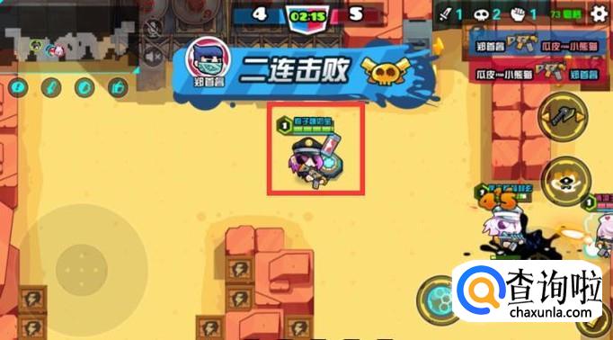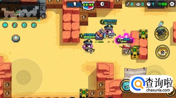 再移动摇杆去打对面的玩家,想要技能升级的快,就可以打地图上面的木箱子,箱子都是有血量的,打完箱子就会获得宝石,宝石就可以升级技能,从未让你战斗时,很快的打倒对方。