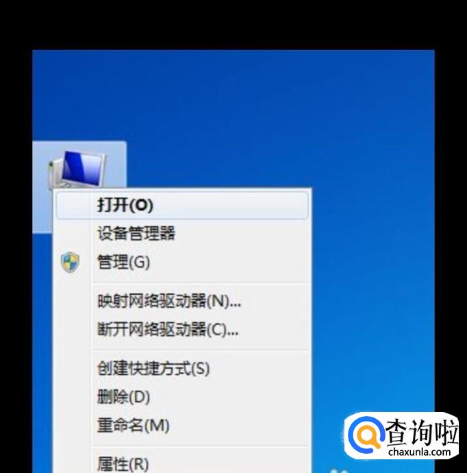 开机,在桌面上找到我的电脑,右键点一下,会出现一个下拉菜单,然后点击属性。