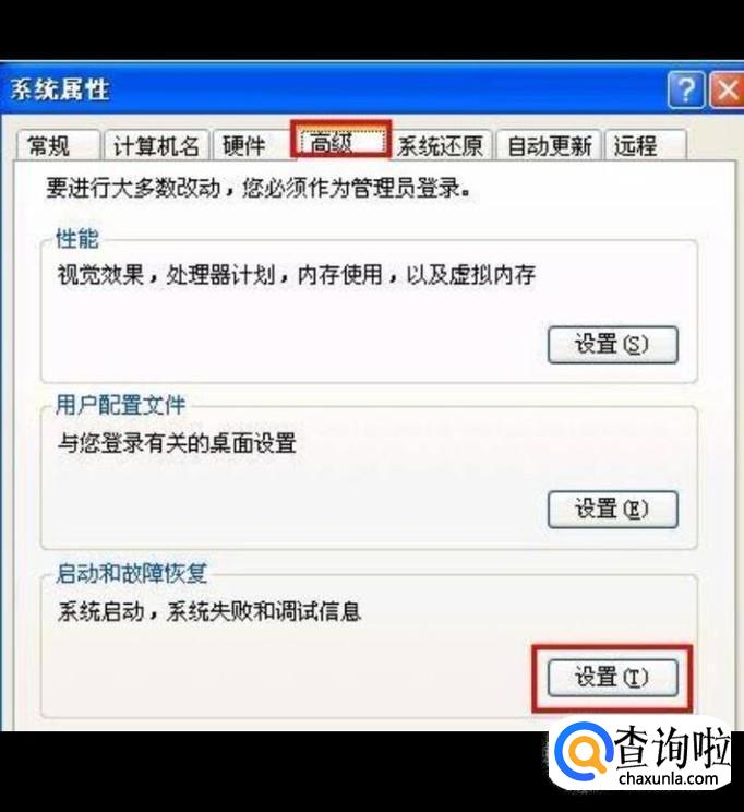 点击高级之后,点击最下面的启动和故障恢复中的设置。