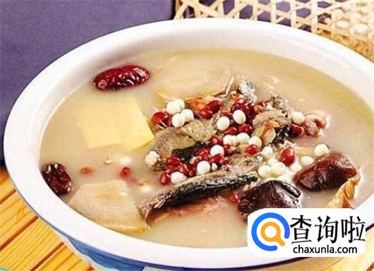 这款鱼汤有着补气、除湿、利尿、消肿以及健脾的功效,做法也是很简单。鱼清洗干净去掉内脏以及鱼鳞,现放锅里煎的两面发黄。猪肉清洗干净切大块,红豆清洗,冬瓜切大块,全部放在锅里一起煲,大概三个小时就可以了。
