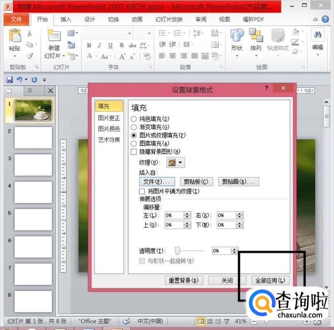 此时,我们点击右下角的“全部应用”,所有的PPT就都是同样的背景图片啦!