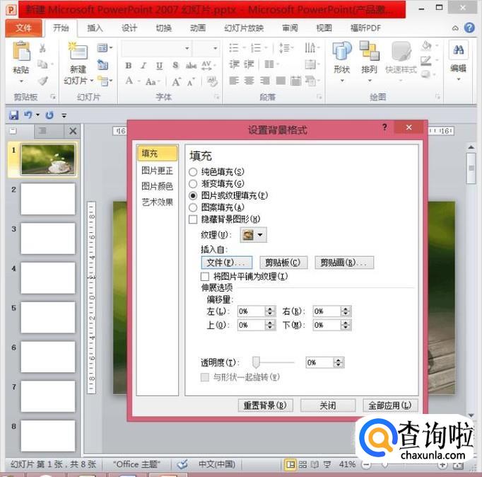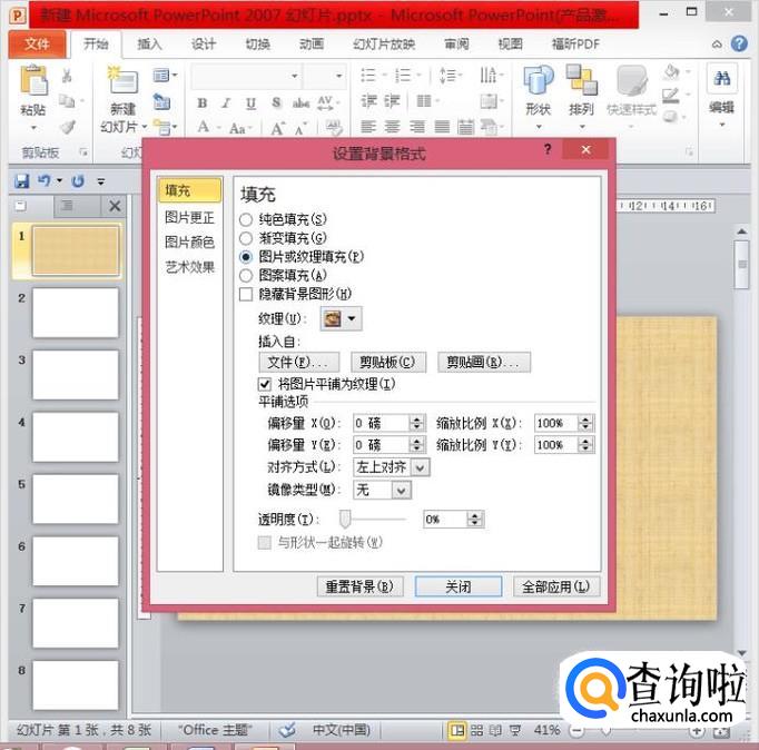 在弹出的对话框中,点击“图片或纹理填充”