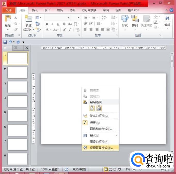 你就会发现,第一张PPT已经有了背景了