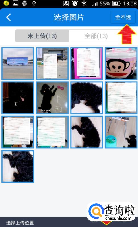 打开以后,我们可以全选,或者选择你要上传的图片,然后上传,下面的箭头表明你有多少图片上传。
