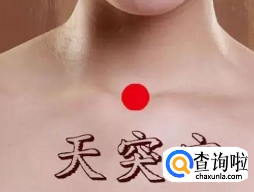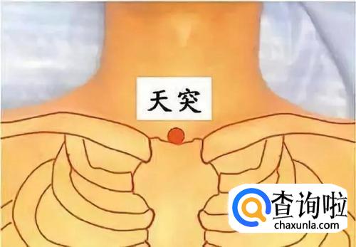 天突穴:位于颈部,当前正中线上,胸骨上窝中央。