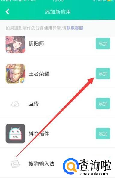 进入之后,将王者荣耀应用添加上去,如图所示。