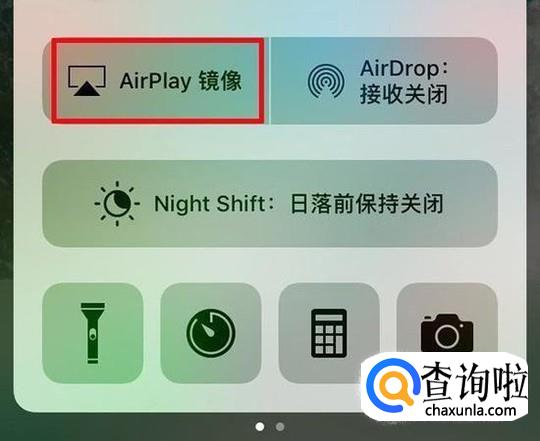 接下来我们找到手机的屏幕镜像功能(我们以苹果手机为例),把苹果手机下面的菜单栏拉上去就可以看见。