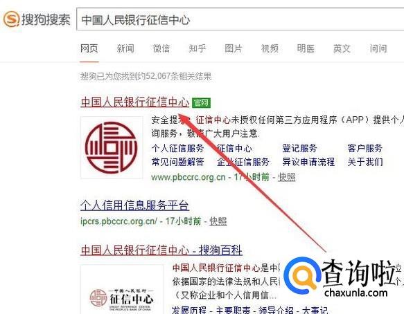 进入之后,搜索“中国人民银行征信中心”,点击并进入,如图所示。