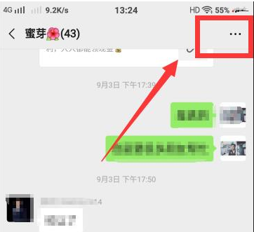 2、进入后,在群聊天页面的右上角有个符号,如下图,点击进入。