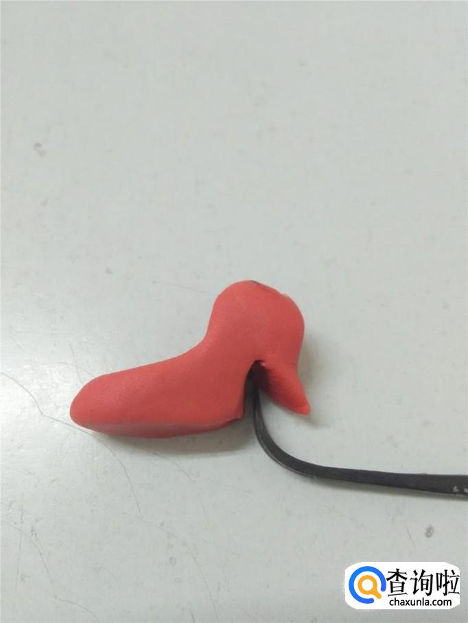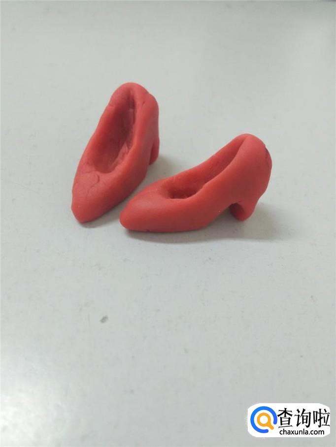 用同样的方法,把另一只高跟鞋也做好,芭比娃娃就有了一双红色的高跟鞋了。