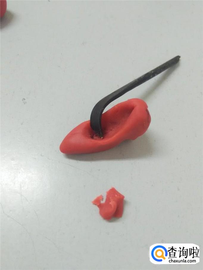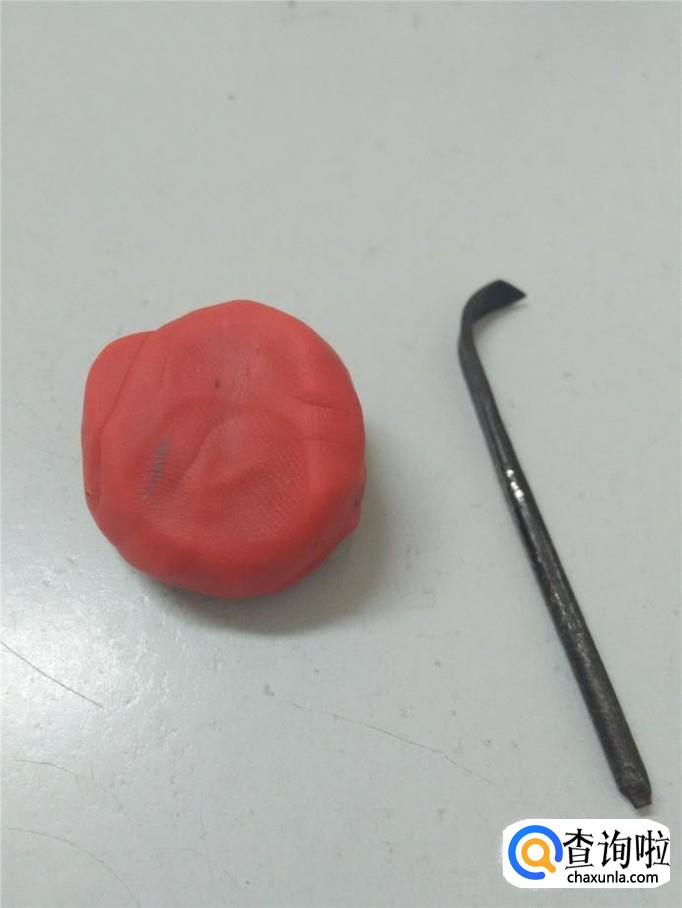 准备红色的彩泥和印曲刀,这种刀的刀尖是弯的,正好用来掏鞋里的彩泥。