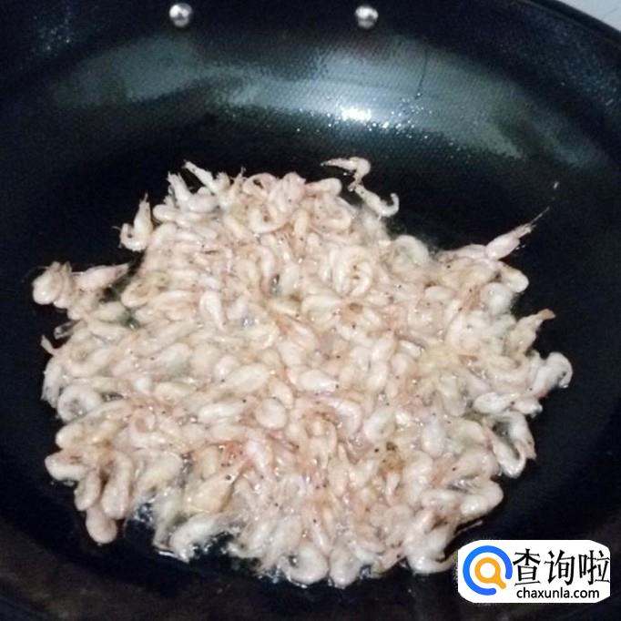 放入腌制好的虾,用筷子滑动虾,使虾受热均匀。