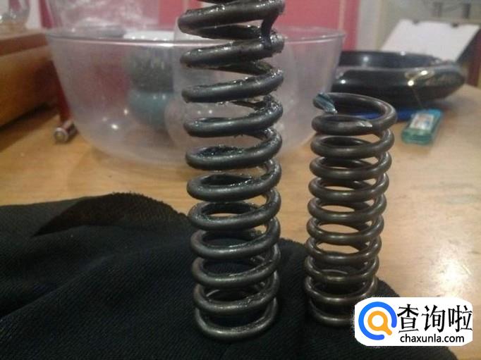 在大的瓶盖上贴好弹簧,用双面胶贴,将弹簧贴上并且固定好后,试试弹簧的松紧程度如何。