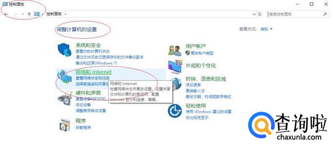 唤出"控制面板"程序窗口,如图所示。点击"网络和Internet"图标,根据自己的喜欢和需要更改系统设置。