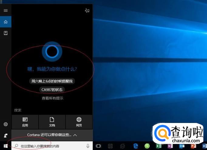 启动Windows 10操作系统,如图所示。点击任务栏搜索框,开始使用Cortana(小娜)智能语音助理。